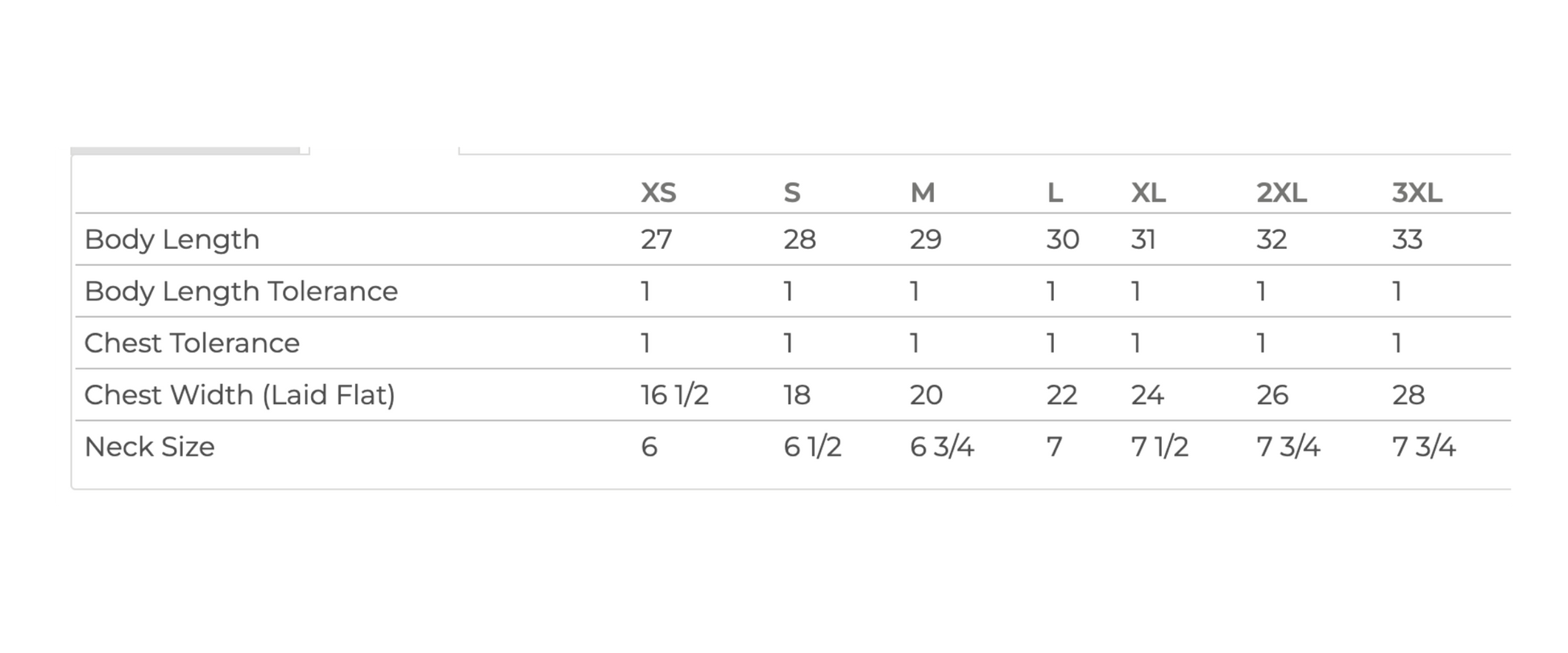 Available in sizes XS through 3XL. Check the size chart to find your perfect fit.